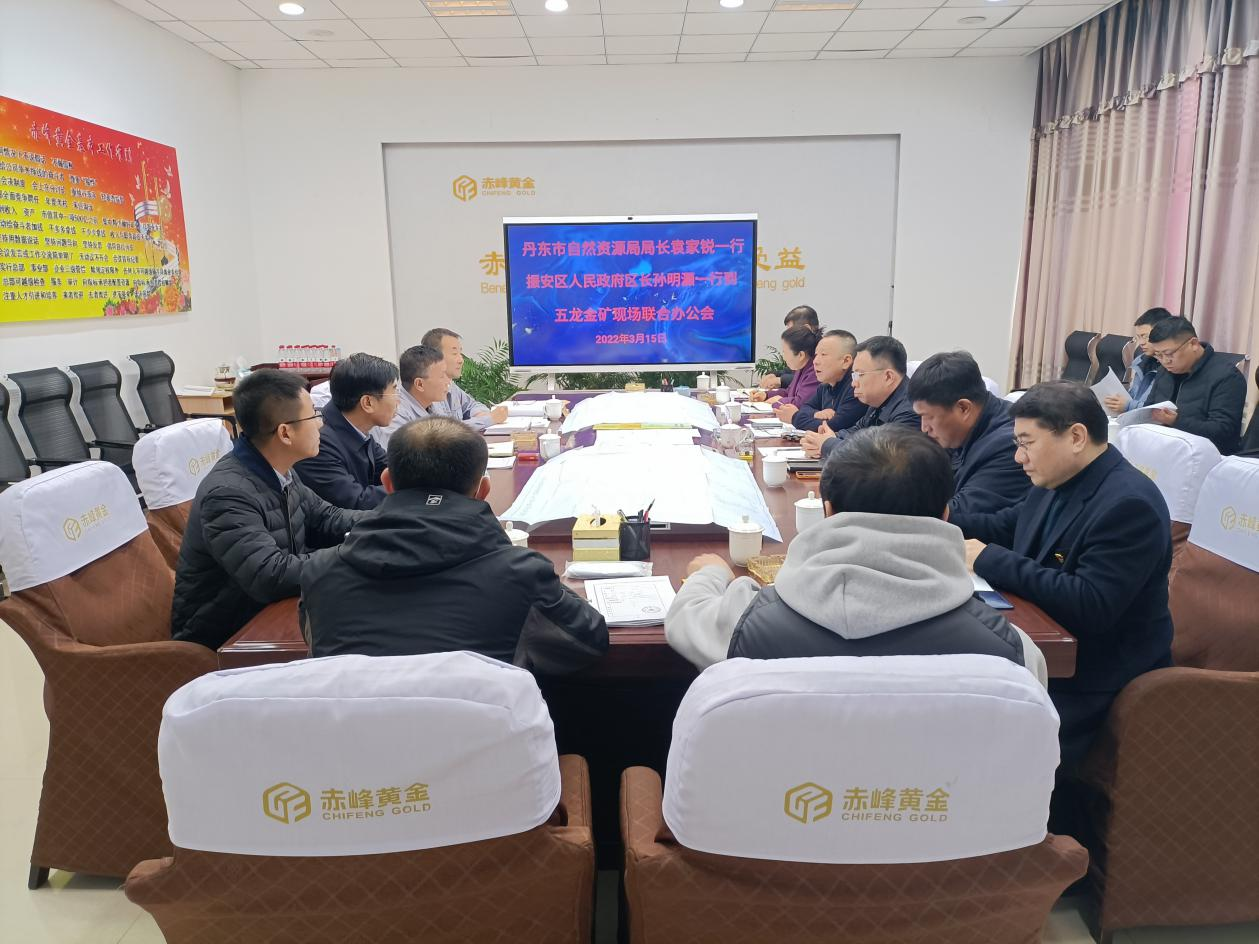 3月15日,丹東市自然資源局局長(zhǎng)袁家銳、副局長(zhǎng)王會(huì),會(huì)同振安區(qū)人民政府區(qū)長(zhǎng)孫明灝帶領(lǐng)相關(guān)科室人員一行16人到五龍礦業(yè)召開(kāi)現(xiàn)場(chǎng)辦公會(huì)。五龍礦業(yè)總經(jīng)理劉金、總工程師邱海成參加了會(huì)議。